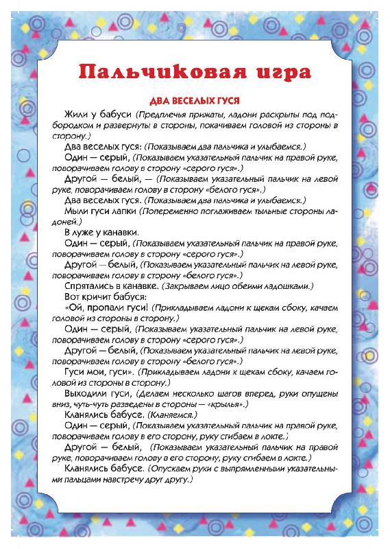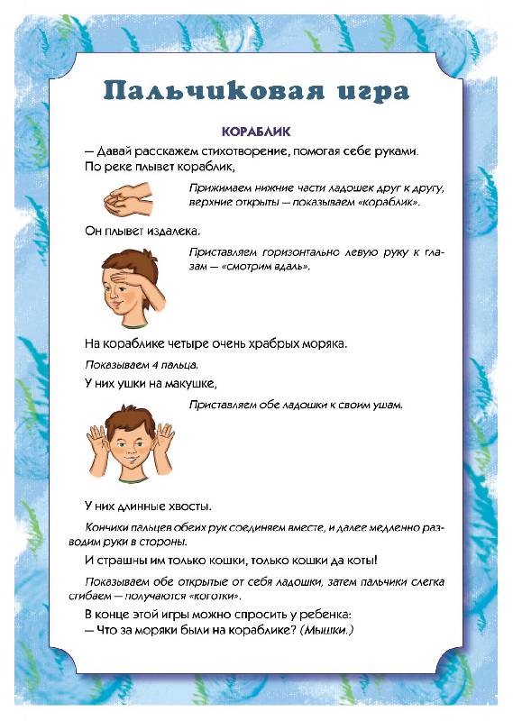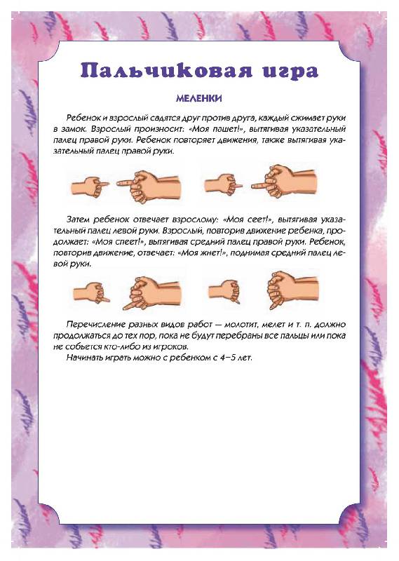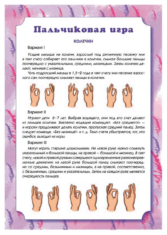 Les jeux de doigts vous permettent de développer la réflexion, la gymnastique des doigts développe la capacité du bébé à imiter les adultes, nous apprend à écouter notre discours et à le comprendre plus rapidement. Et le plus important - de tels jeux apprennent à l'enfant à se concentrer et à préparer ses doigts pour maîtriser la compétence d'écriture, ce qui est très important! Et tout cela dans le format du jeu que les enfants adorent vraiment!Nous jouons et développons la motricité fine. Jouez avec le bébé autant que vous le voyez, et si l'intérêt se dissipe, passez à d'autres jeux.