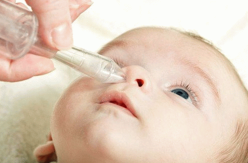 - Vous devez d'abord nettoyer les voies nasales. Pour ce faire, mettez l'enfant sur le dos, tournez légèrement la tête sur le côté et pipetez une ou deux gouttes d'eau salée ou bouillie ordinaire.