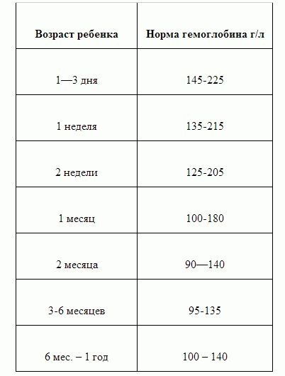 Chez les bébés jusqu'à un an, l'hémoglobine dans le sang ne doit pas être en dessous de 105 g / l. Chez les enfants de leur deuxième année de vie, l'anémie indique un indicateur moins de 100 g / l.