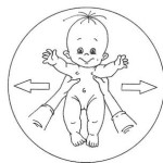 L'enfant est allongé sur le dos sur un canapé ou une table. Nous apportons le fitball aux jambes et pressons un peu. L'enfant commence instinctivement à repousser le ballon avec ses pieds.