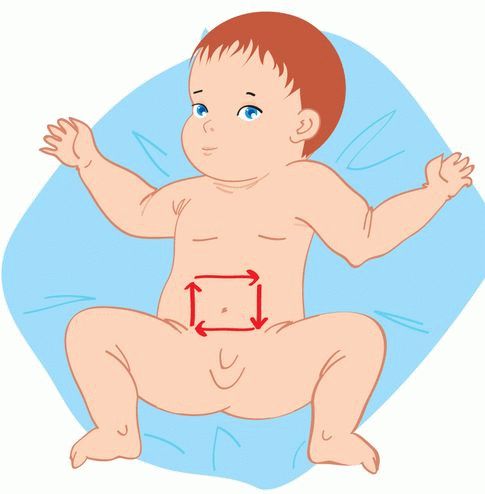 4. Caresser le ventre en forme de U est également efficace. Il peut être effectué en trois étapes: d'abord, avec la paume droite, vous devez caresser le ventre du bébé de gauche à haut, puis le mouvement est effectué par un «coin», de l'hypochondre droit à gauche, puis de haut en bas. Après cela, le ventre est caressé sous la forme de la lettre P: la main va du côté droit du ventre vers le haut, puis de droite à gauche, après cela - du côté gauche du ventre de haut en bas.